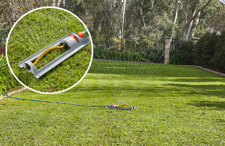 Our pick: Pope Rainmaker Oscillator. It provides a rectangular pattern, perfect for watering medium to large gardens up to 16 metres by 14 metres. You can easily adjust the range adjustment collar to suit your lawn shape and size. The patented sled base design allows for easy movement when pulling the hose and dragging the sprinkler around the lawn.