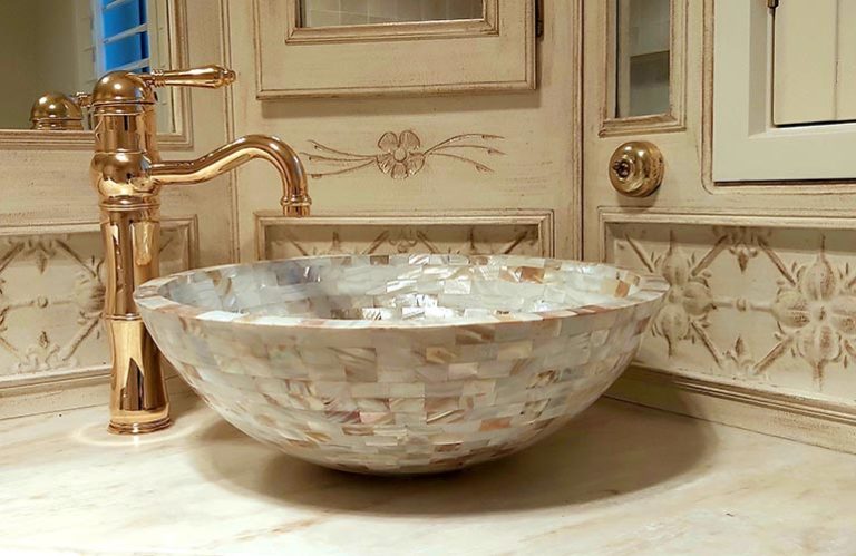 Shimmering and stunning, these can add a real feature to your bathroom. Mother of pearl is a composite material produced by molluscs and the outer coating of these sinks are strong and resilient. There are white, chequerboard and dark versions to select from.