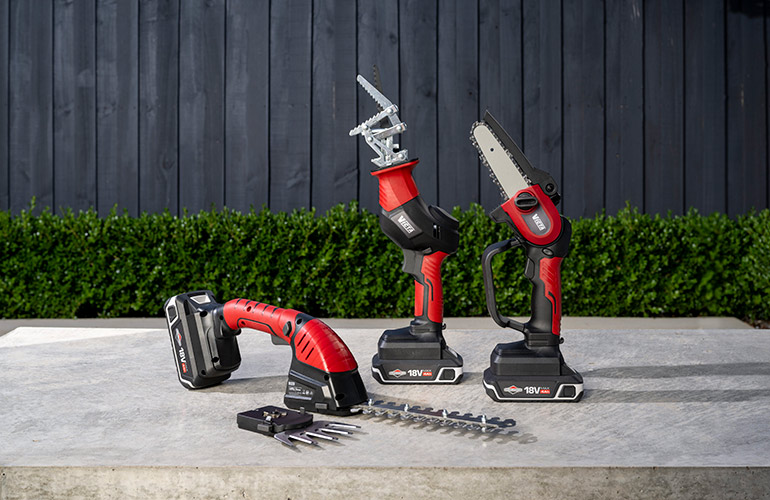 Mini Handhelds – Not all pruning is on the larger scale and Victa have released a fabulous range of handheld cutting and trimming tools using the same 18V Briggs & Stratton batteries.