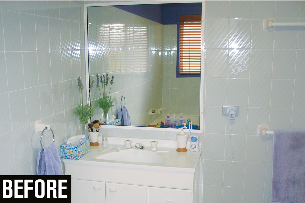 ‘My wife and I had a very small budget of $5000 to renovate our bathroom. We wanted new flooring, wall sheeting and tiles that would reach around the shower, vanity and mirror,’ says Richard.